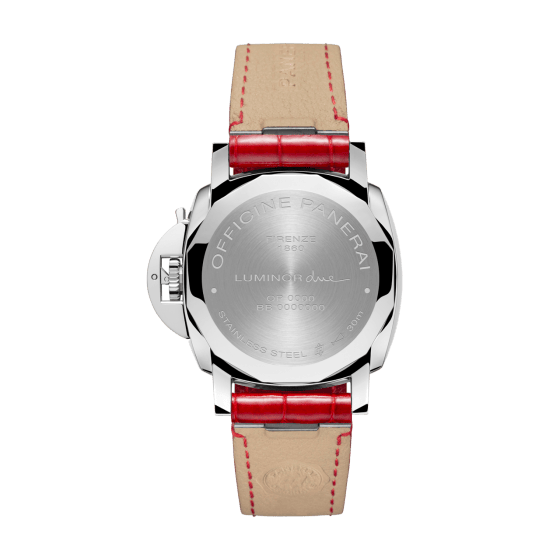 パネライの中でも最薄シリーズ「ドゥエ」。新たなゴールドの針の仕様により、ダイアルの表現がより豊かにあらわされています。