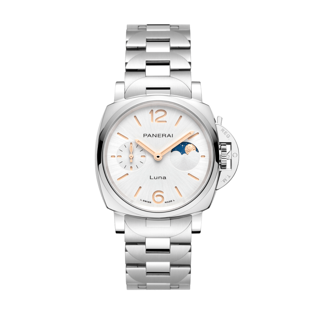 パネライの中でも最薄シリーズ「ドゥエシリーズ」。美しい月齢表示が加わって、ダイアルの表現がより豊かにあらわされています。