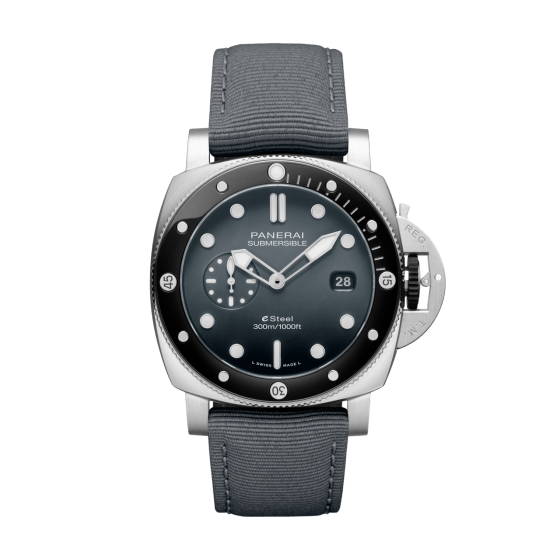 「サブマーシブル クアランタクアトロ eSteel™」は、ブランドが確立したデザインコードと技術的な繊細さを維持しながら、サステナビリティ目標の重要性に配慮した先端素材であるeSteel™を使用しています。環境問題が深刻化し、その解決策が求められる中、時計産業のあらゆる側面で環境負荷を低減する取り組みが注目されています。eSteel™は、同一化学的挙動、物理的構造、耐腐食性など、従来のスティールと同じ特性を持ち、ダイビングウォッチのアイコニックな「サブマーシブル」コレクションと自然に調和するメタルです。