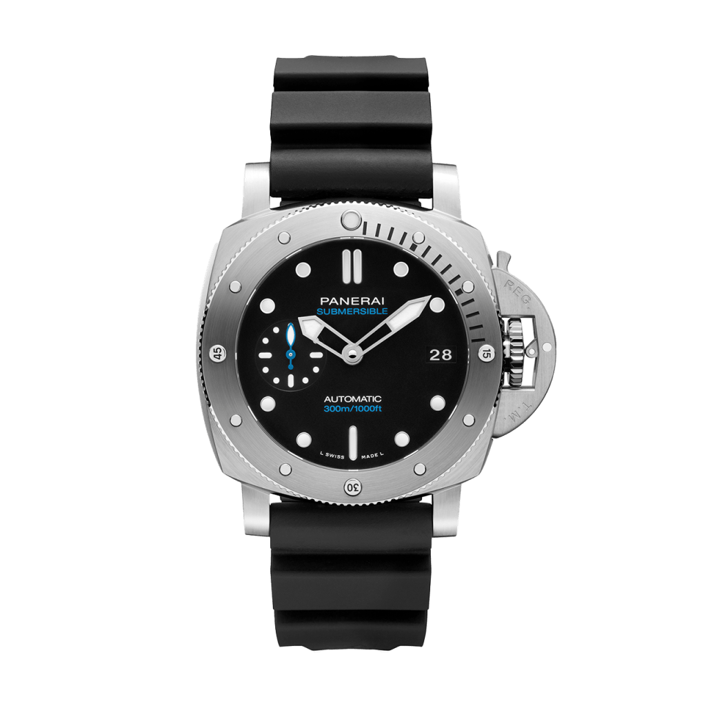 逆回転防止ベゼルによって潜水時間を正確に算出することができ、さらには、インデックスと大きなスケルトン針にはスーパールミノヴァ®が塗布されており、暗闇でも優れた視認性を保証します。 この時計に使用されているラバーストラップは極めて丈夫で、ダイビングに最適です。