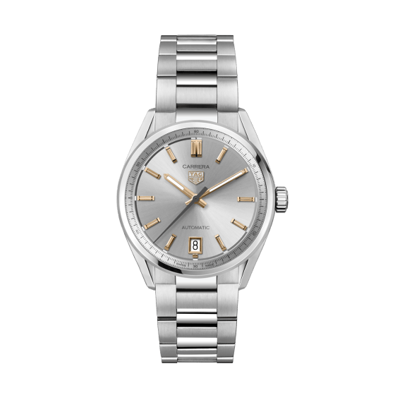 より薄くなったラグを備えた、超エルゴノミックなタグ・ホイヤー カレラ デイト。エレガンスとコンフォートの完璧なバランスを湛えたウォッチです。堅牢なステンレススティールのデザインに、フランジに沿って施されたリングの明暗のグラデーションといったディテールが、高貴な雰囲気を与えています。素晴らしきクラシック