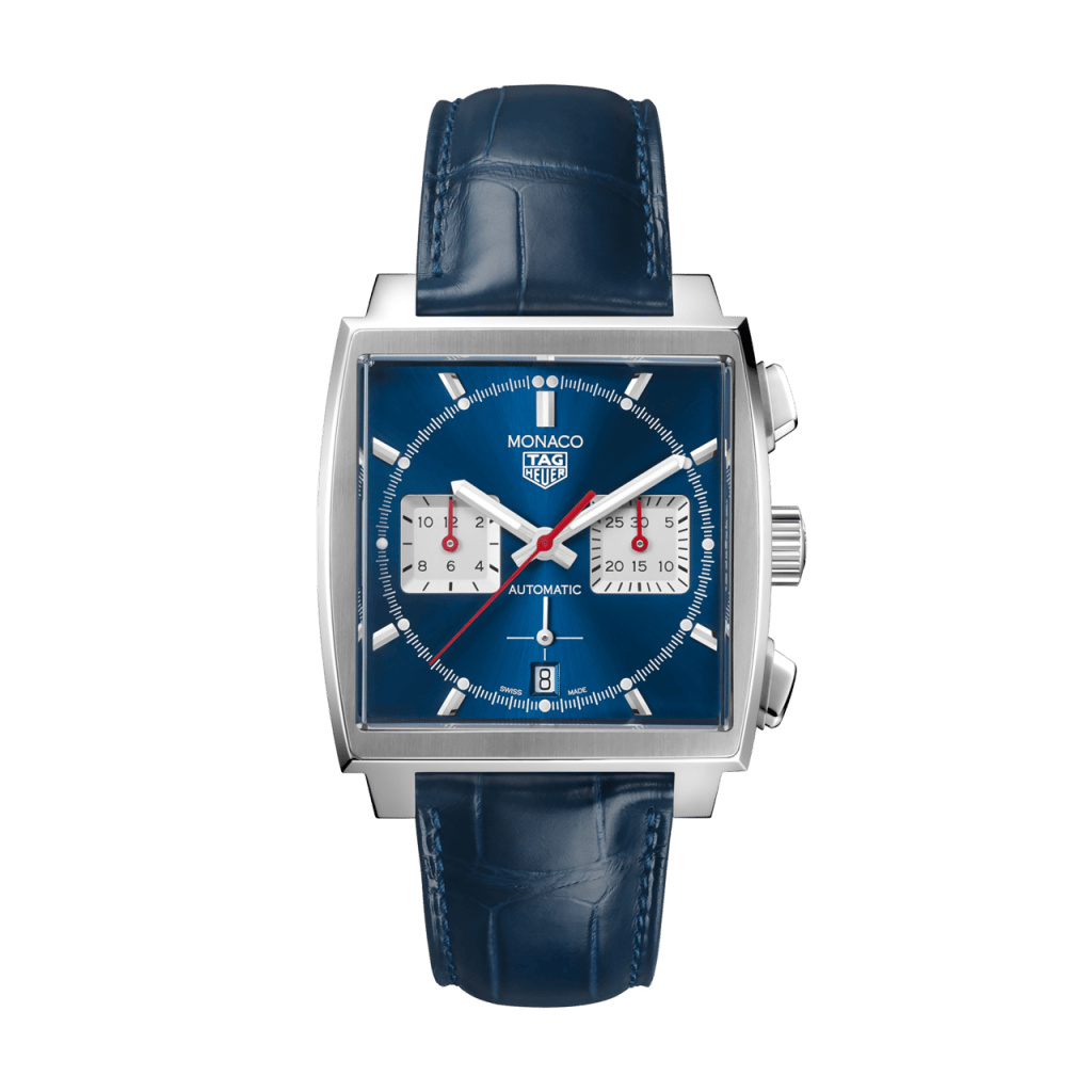 最初に誕生したモナコには、自社製ムーブメント、ホイヤー02が搭載されていました。オリジナルのモナコのブルーのスクエアケースを踏襲した、ビンテージ性の高いタイムレスなデザインで、80時間のパワーリザーブを備えています。