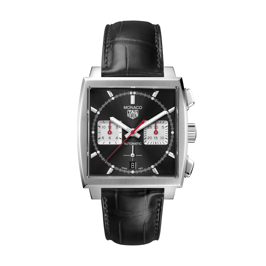 このエレガントなモナコには、スクエア型の美しいブラックサンレイダイヤルに、ブラックのアリゲーターストラップが組み合わさっています。約80時間以上のパワーリザーブを備えた自社製のホイヤー02自動巻ムーブメントを搭載した型破りなモデルです。
