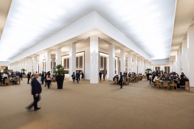 会場内は各ブランドのブース以外に飲食スペースやソファ・テーブルも各所に設置されており、世界中の小売店のスタッフがPCやタブレットで情報公開をしております。私も商談終了→更新→商談を繰り返す1日で心身共に疲弊したのを覚えています。