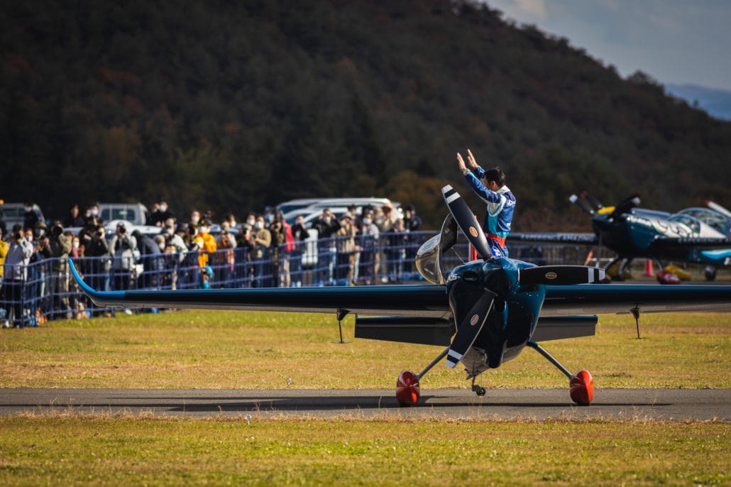 目の前を飛行機がクルクル回転しながらエアレースさながらのショーでした。
