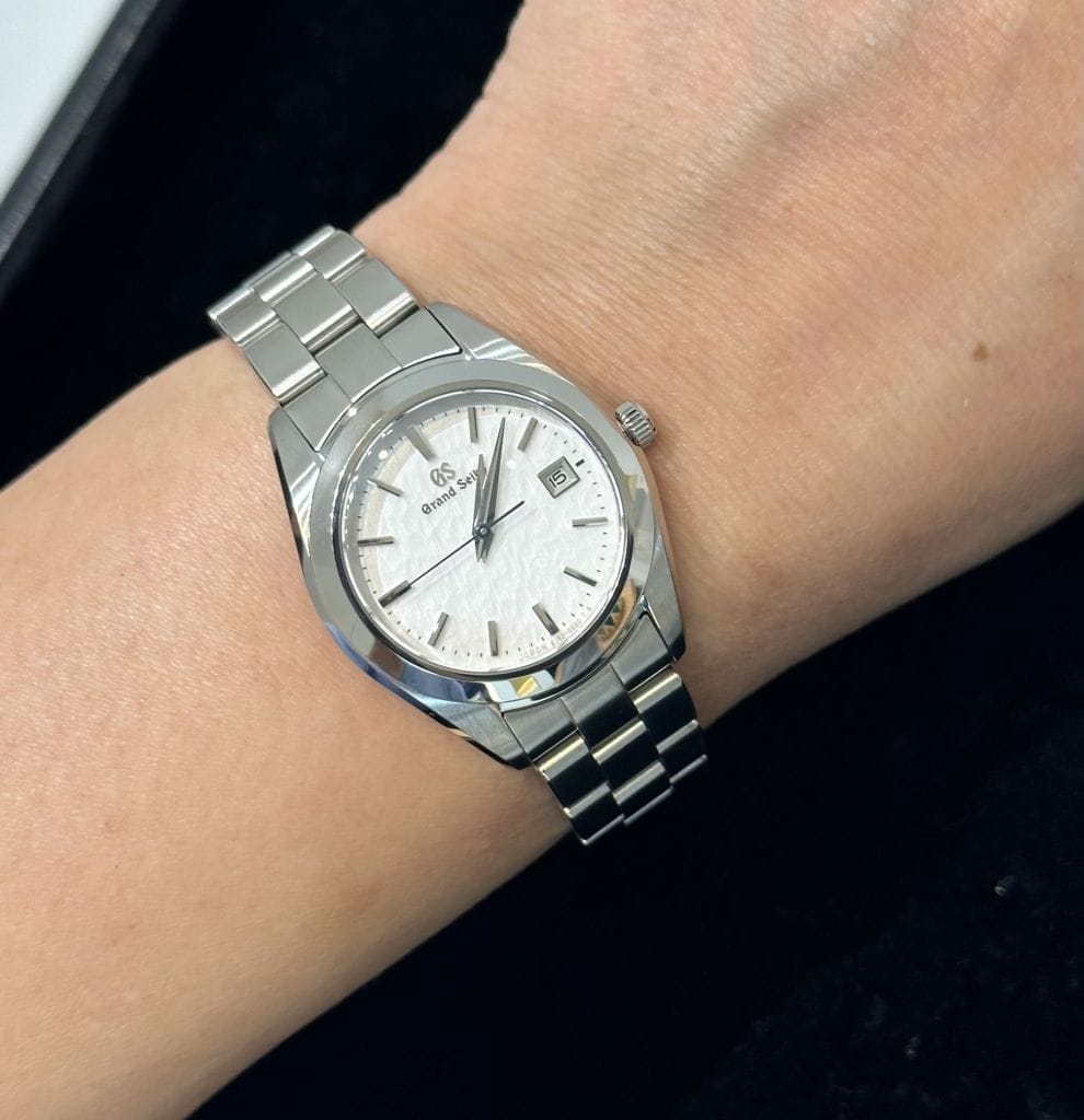 Owners お客様紹介 HF-AGE 高崎店 《お客様紹介》T様の元へグランドセイコーが素敵な旅立ち! 2025年7月5日 SHARE 人気の雪白ダイアルをお求めいただきました! シンプルで上品なモデルなのでシーンを問わずにご着用いただける人気のレディースウォッチとなります。 ご主人に写真の撮り方のコツを教わりながら撮影したが、いかがでしょうか?笑いつもよりお時計がはっきりと撮影できた気がします😊 T様、誠にありがとうございました。またご家族で遊びにいらしてくださる事お待ちしております。 髙橋 2025年7月5日 SHARE