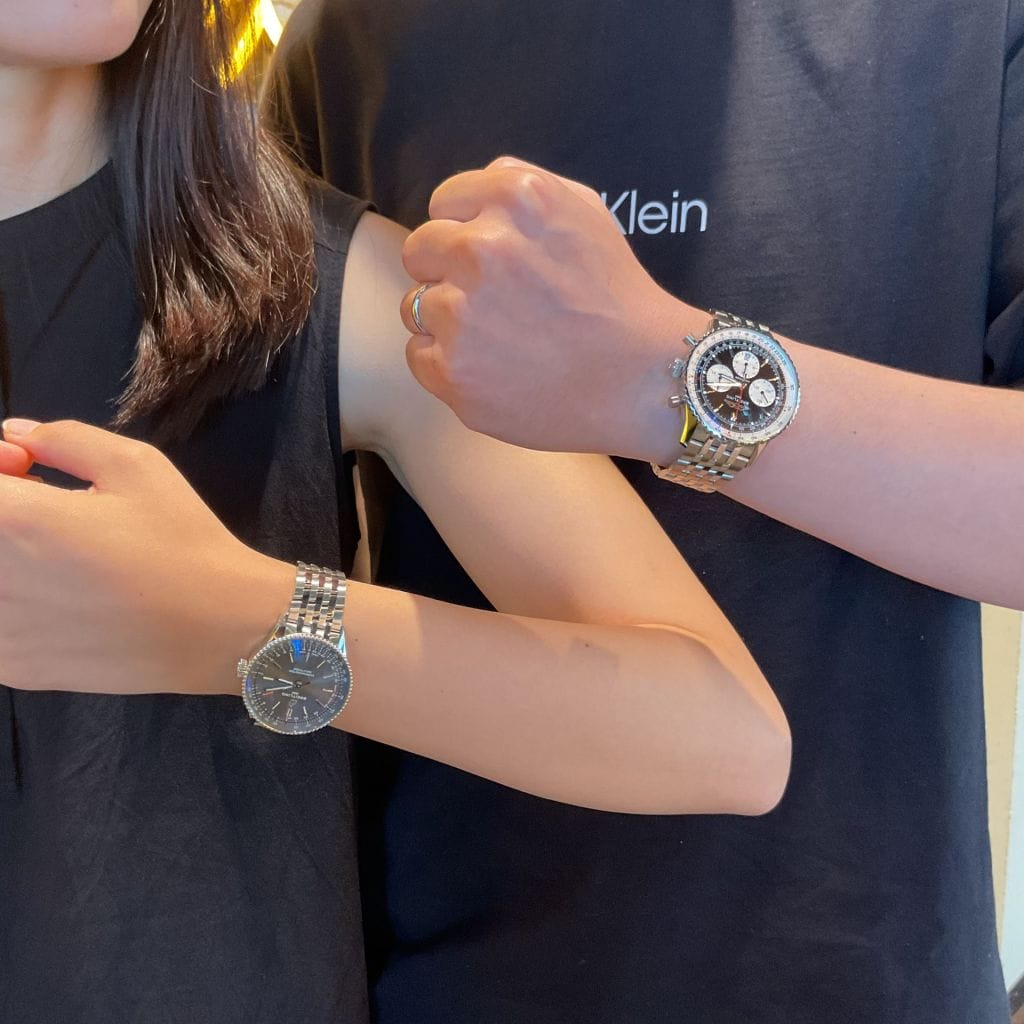 後日奥様とご一緒に来店され、お二人がお選びになったのはナビタイマー43クロノグラフ、