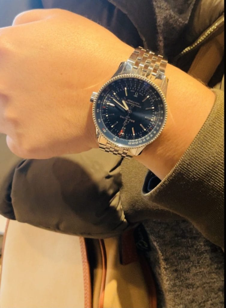 今回ご成約いただきましたクラシカルなナビタイマーシリーズはビジネスシーンからカジュアルシーンまで幅広くお使い頂けます。