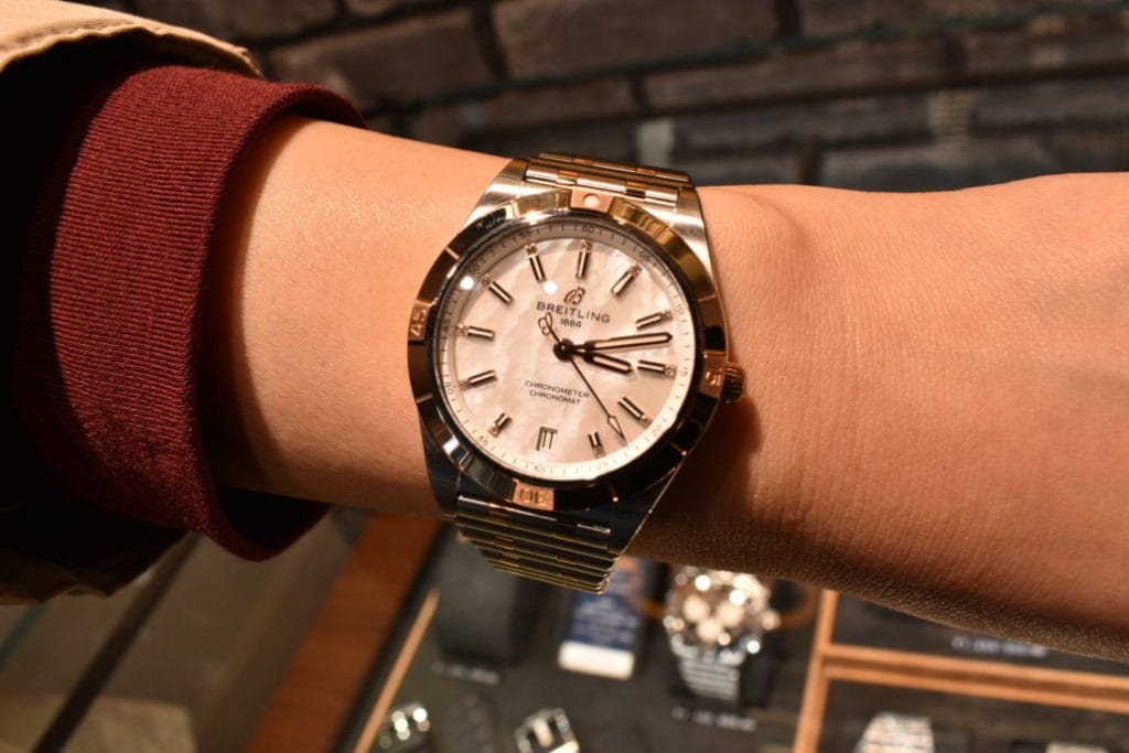 その中でもクロノマット36 マザーオブパール文字盤18kコンビモデルを大変気に入っていただきご成約頂きました。