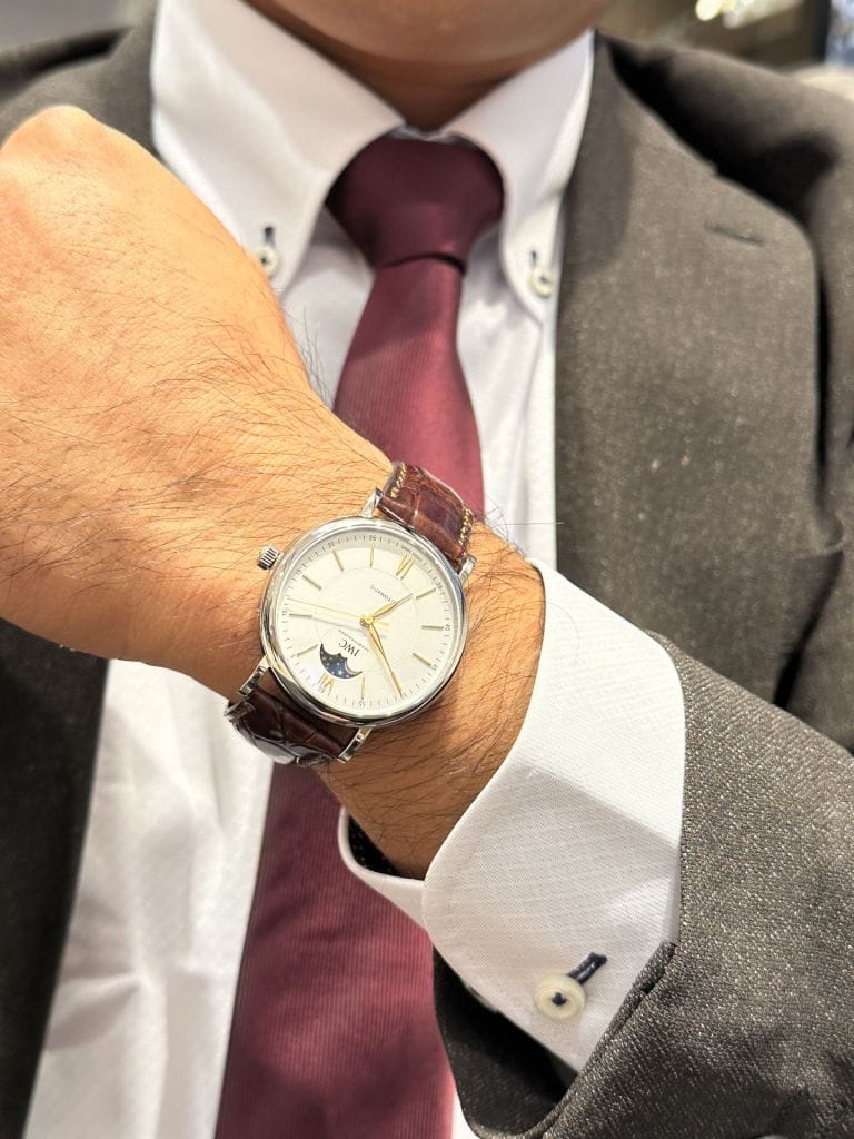 気になるのはIWC。様々なデザインのモデルが並ぶ中目に留まったのは『ポートフィノ・ムーンフェイズ』でした!