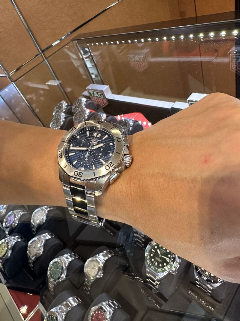 Owners お客様紹介 HF-AGE 高崎店 《お客様紹介》H様が手にしたタグ・ホイヤー! 2025年11月6日 SHARE H様からご連絡をいただき、ご紹介したタグ・ホイヤー。中でも検討されていたアクアレーサークォーツクロノグラフ。第一希望は黒文字盤でしたが、あいにくご用意が出来ず。ご検討いただく中で、もう一度見に来て下さいました。フォーミュラ1など、様々なモデルをご試着していただく中、フィットする時計はやはりアクアレーサークロノグラフ。そして、H様にはブルー文字盤をお選びいただきました。素敵なモデルをお選びいただきありがとうございます♪これからぜひたくさんお使いください! 石関 2025年11月6日 SHARE