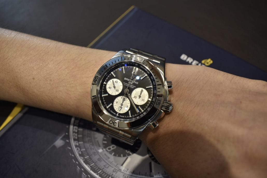 当初別のモデルをご検討いただきご来店いただきましたM様、クロノマットをご試着いただきましたところやっぱりこっちですね〜とお求めいただきました。