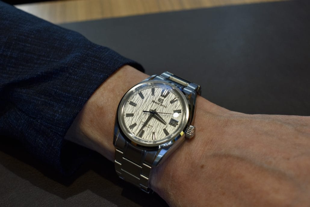 グランドセイコーを中心にシンプルでエレガントなモデルをいくつかご試着いただき、白樺ダイヤルのメカニカルをお求めいただきました。