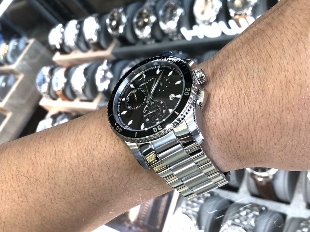お選びになったハミルトン ジャズマスター シービュークロノに素敵な刻印も入りました!