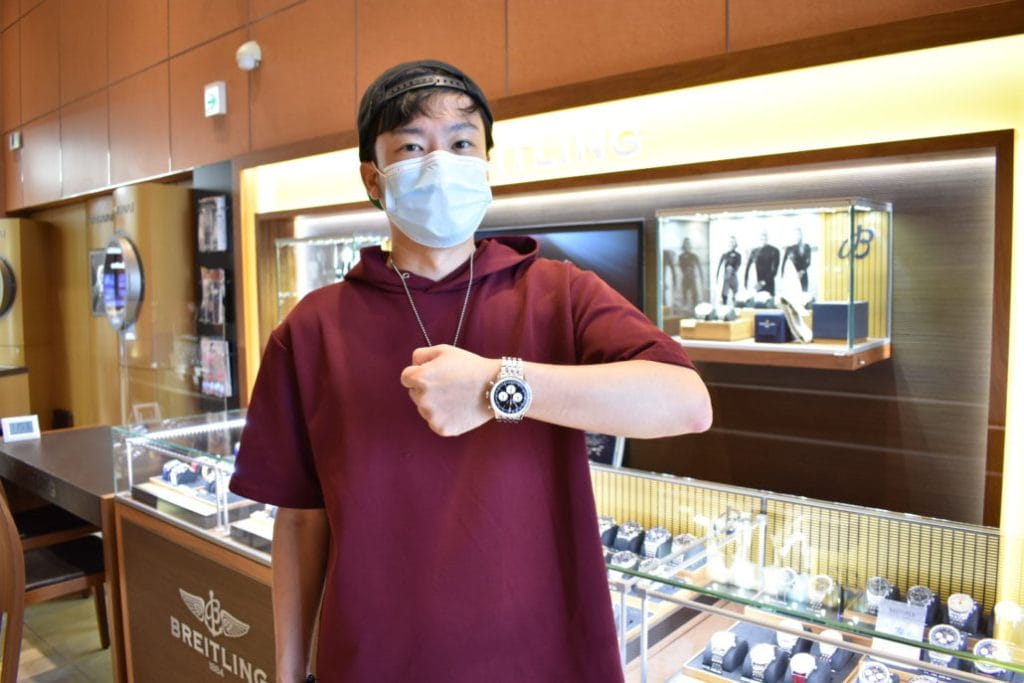 どちらもカッコよくお似合いでしたね!たくさんご試着もして頂きましたが、やっぱりナビタイマーで!とご決定に(^^)