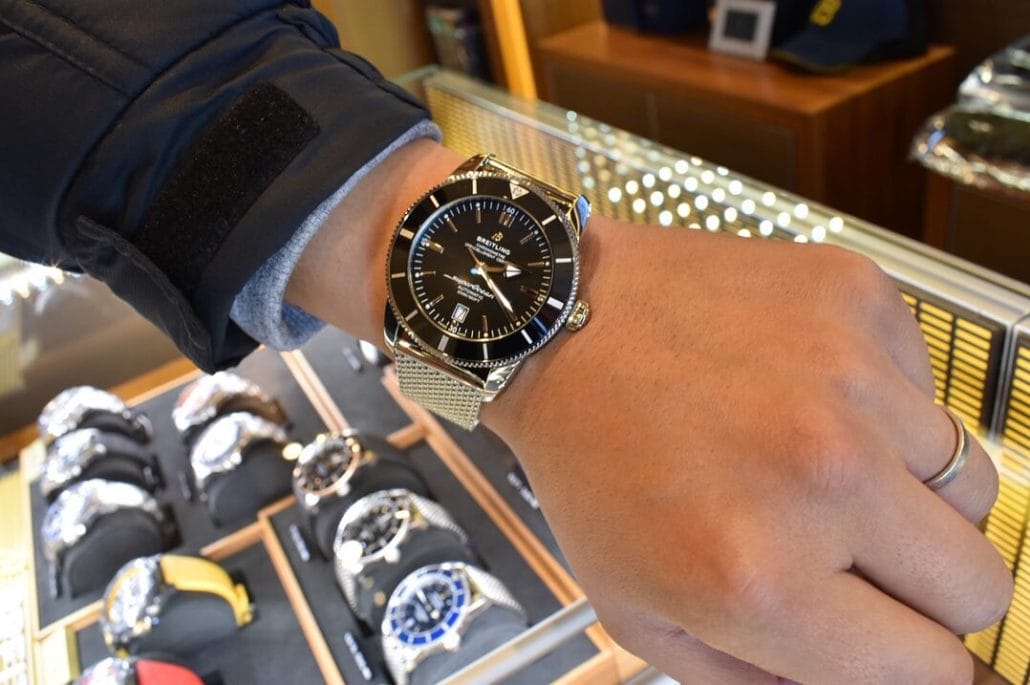 パネライをご愛用いただいているM様は、そのパネライをご購入時から次はブライトリングのスーパーオーシャンヘリテージⅡを購入しようと決めていたそうです。