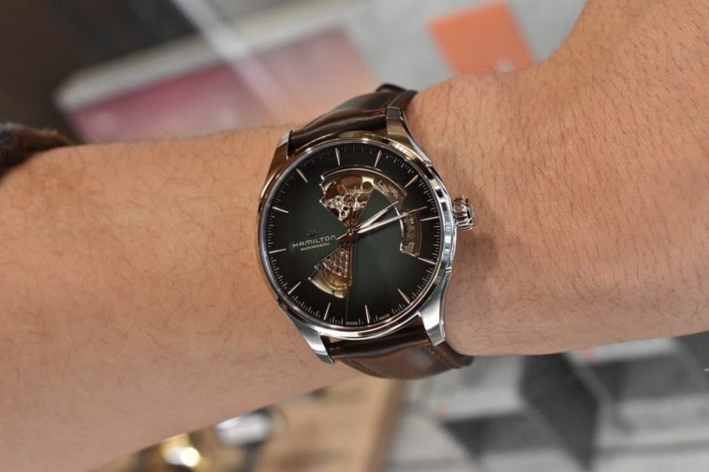 ハミルトンジャズマスターオープンハートの新作モデルグリーンの文字盤をお選び頂きました。